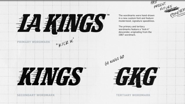 The fresh version of the 90’s logo was designed by the Yorklyn, Delaware-based House Industries studio that is a long-standing partner of the LA Kings. Involving the club’s management, current and former players, the rebranding process went through a number of concepts, drawing, and sketches until the redesign team finally settled on the “chevron” logo.