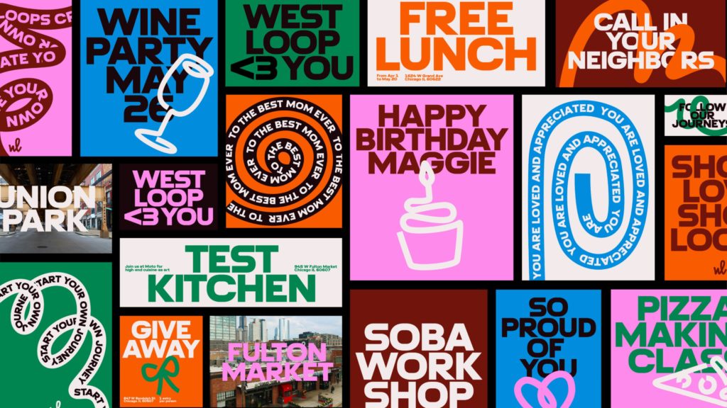 While these messages have to strengthen the brand atmosphere that is really created by humans, the digital experience, as Landor says, “creates its own loop” and allows residents to express their unique connection with the neighborhood, reinforcing the idea that this uniqueness of individual experience is in West Loop’s DNA. Due to its new identity, West Loop looks quite different from the neighboring Loop district, advancing its history and humanness.