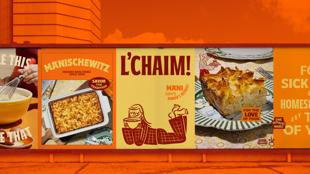 Significant enhancements were made to the packaging, featuring a bold orange design that enhances the presentation of dry and unleavened products like matzo. Manischewitz’s other offerings stand out for their vibrancy, creativity, and playful elements, crafted to establish a distinctive and appealing presence in the market. They are intended to cater not only to existing brand enthusiasts but also new customers who are sure to be captivated by treats such as matzo ball soup, delectable gefilte fish, or the irresistible crunch of perfectly fried latkes.