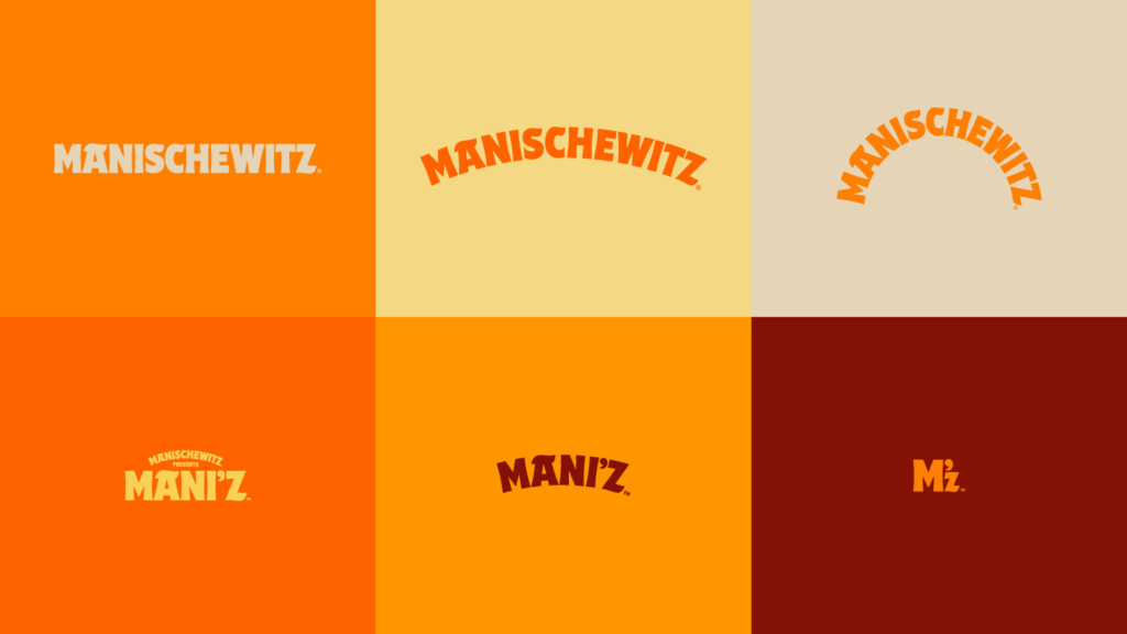 Custom typography assists the brand in crafting clear and engaging visuals through a semi-serif typeface, used in unique rounded lettering, including the Manischewitz logo. Combinations of different widths and thicknesses enhance the arched design intended to be a recognizable brand feature.