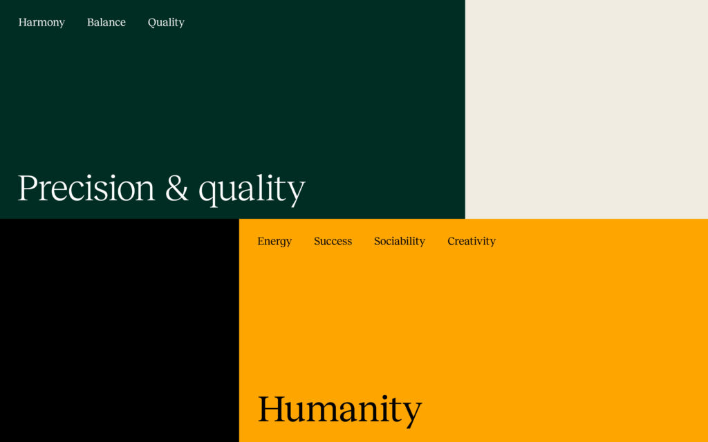 The color scheme also plays on this duality, bridging modernity with tradition by leveraging contrasts, luminosity, and additional hues. For instance, the vibrant orange shade juxtaposes Pine Green and warm light gray tones, creating immediate impact, especially when Reckless is paired with the sans-serif Raleway for conveying the brand’s assertive messages.