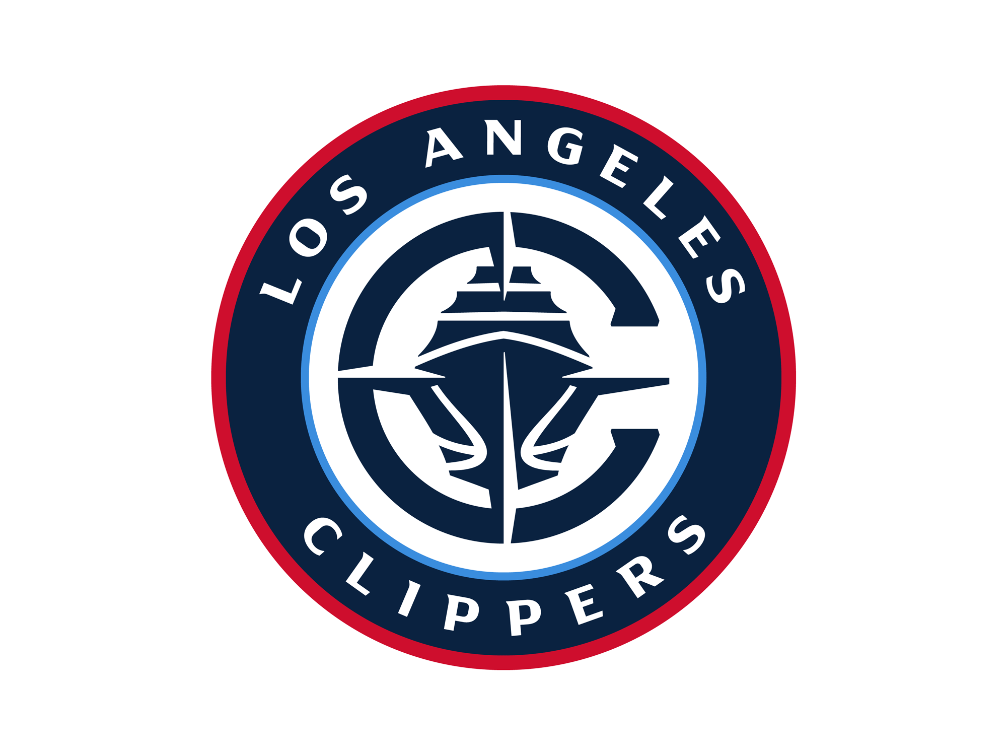 As a reminiscence of the 1979 logo, the new emblem highlights the name “Clippers” and its nautical heritage. While the previous design represented a circle, referring to the basketball and the central circle in the court, with cornered letters “C”, “L”, and “A”, the new roundel features a big “C” with an outline of an oncoming ship. Interesting and symbolic elements here are also points of a compass on the “C”, a basketball pattern on the ship’s hull as well as thin light blue and red rims. The full name “Los Angeles Clippers” in white is placed into the wider dark blue rim.