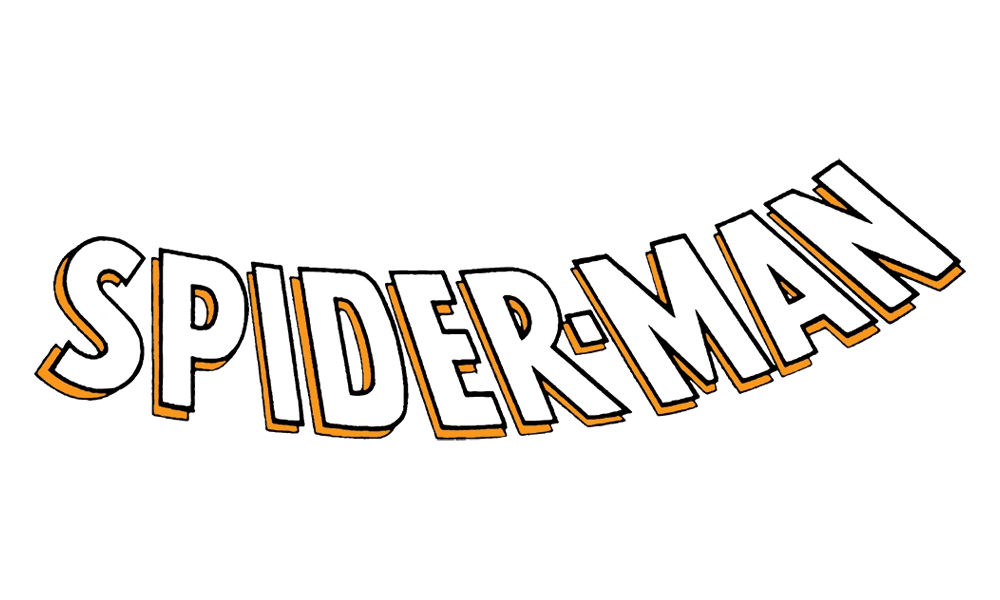 Originally, the logo consisted of a single wordmark written as ‘Spider-Man’, but with exclusively capital letters. The font used here was a soft-shape sans-serif style. The colors: yellow with red undersides. By ‘undersides’, one should mean the sides seen because of the perspective effect. The word was also curved downwards somewhat.