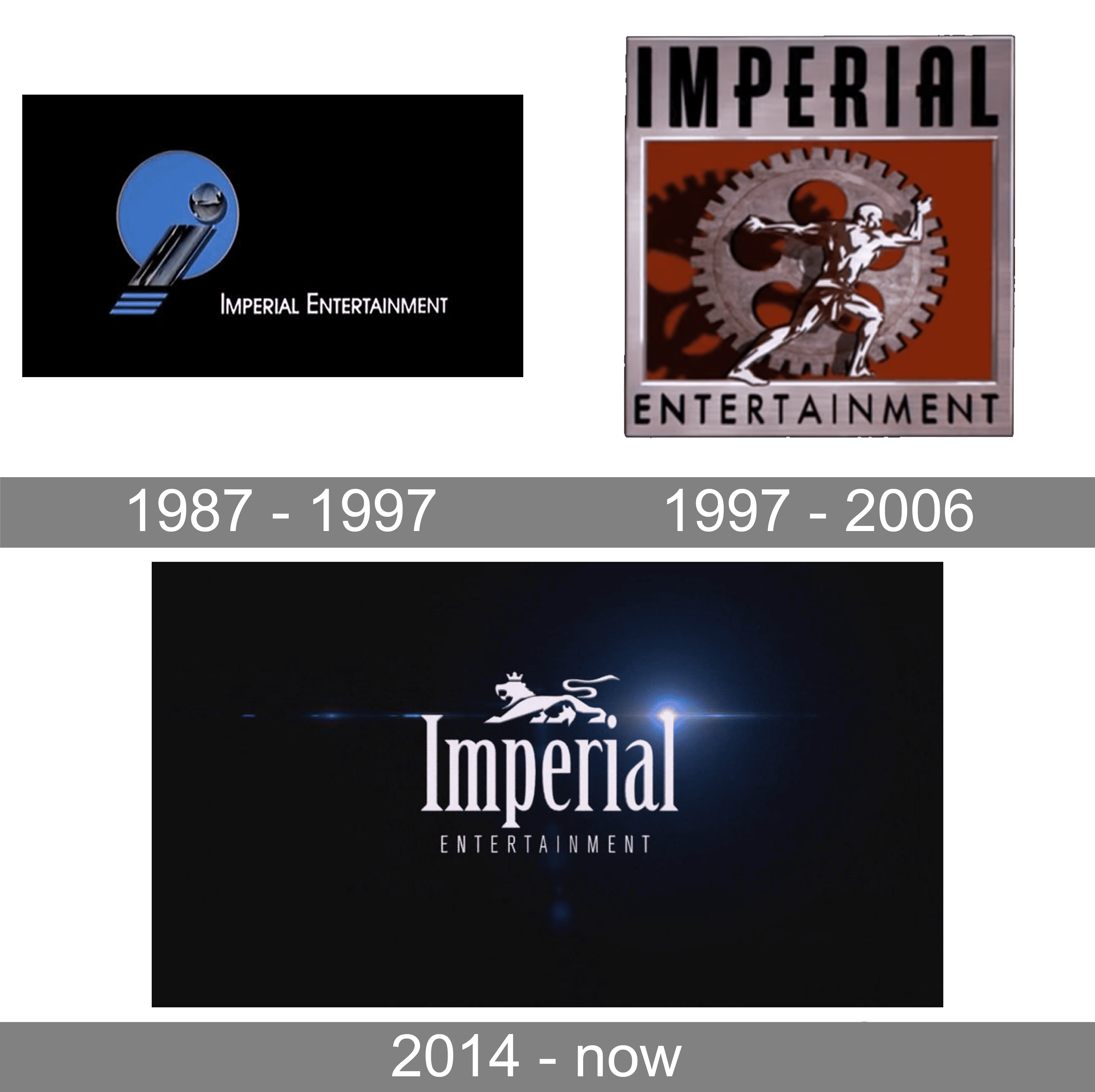 The logo features the full name, Imperial Entertainment, accompanied by its initial as a lowercase letter with a circle in the background. The “i” has a metallic silver or golden finish and was nicknamed “I of Steel” and “The I Sailboat” among some other names. At the bottom of it are three horizontal strokes resembling a stairway. The circle in the background is done in blue and in some versions has a sphere appearance.