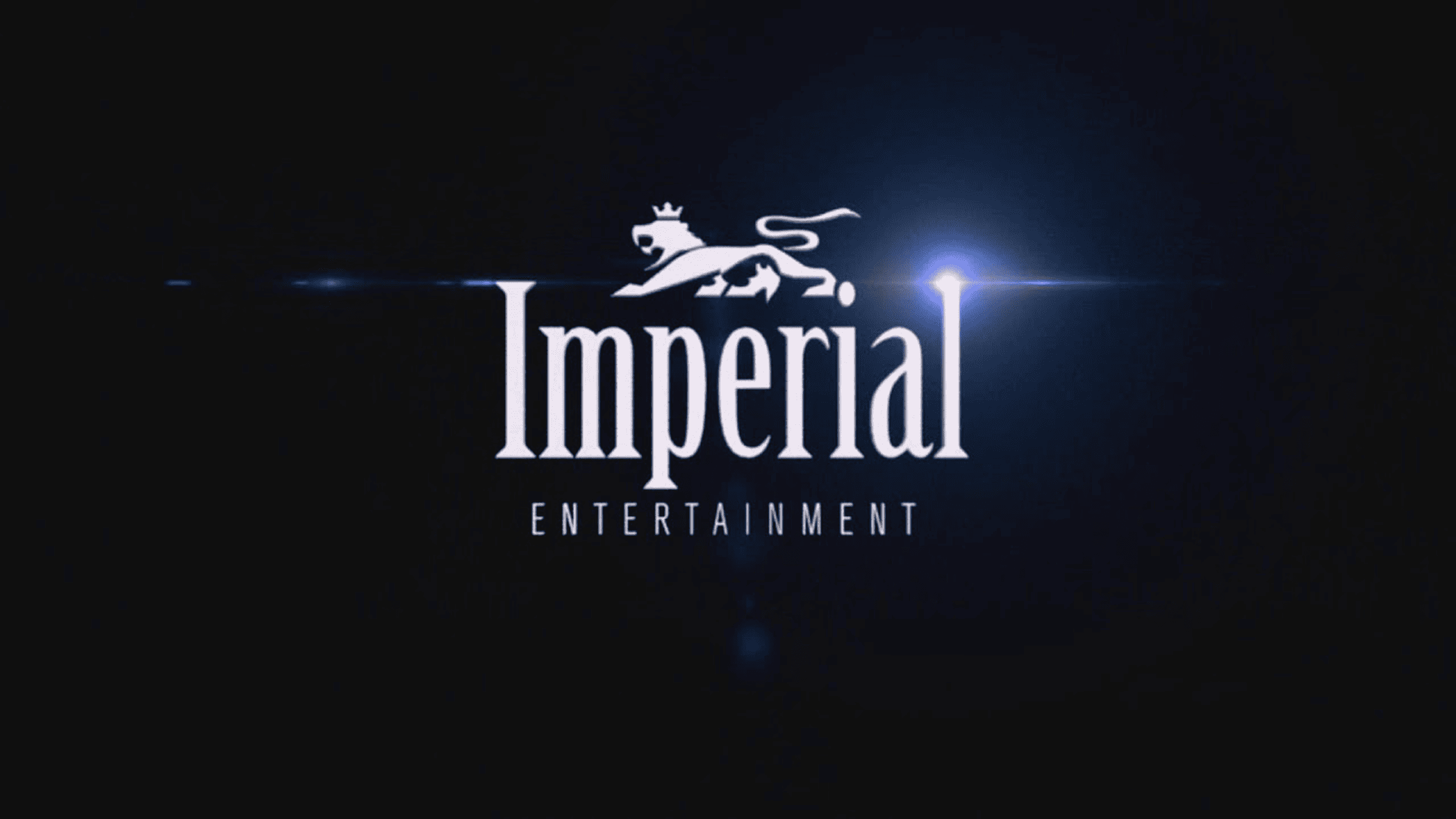 The logo for Imperial Entertainment features a sleek, elegant design set against a deep black background, exuding a sense of grandeur and sophistication. At its center, the word “Imperial” is displayed in bold, white, serif typeface, with a regal, crowned lion emblem positioned above it, symbolizing strength and majesty. Below “Imperial,” the word “ENTERTAINMENT” is written in smaller, uppercase white letters, maintaining a clean and modern aesthetic. A striking blue starburst effect radiates behind the lion, adding a dynamic, cinematic flair that suggests excitement and prestige, perfectly capturing the brand’s focus on high-quality entertainment.