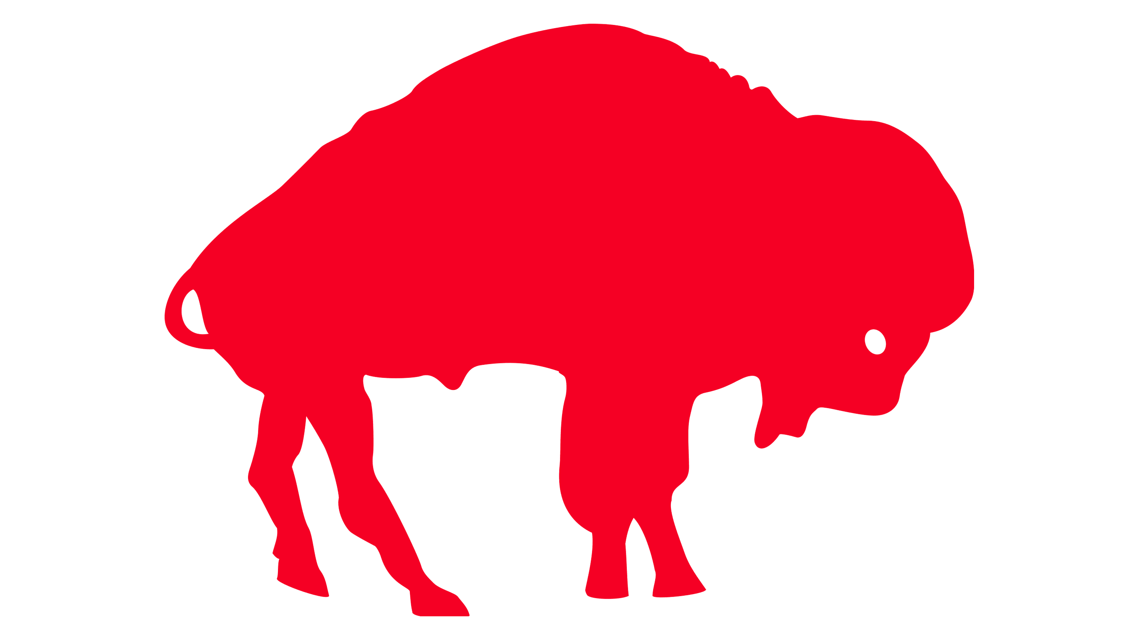 The bison on all four versions of the Buffalo Bills badge featured eyes, but each of them — was different. The realistic badges, used by the club until 1970, had the eyes drawn with all the details, while the Red Bull from the logo, created in 1970, had it stylized as a white dot, and the current badge has the eye merging with the horn, with the red stripe coming out of it to the left.