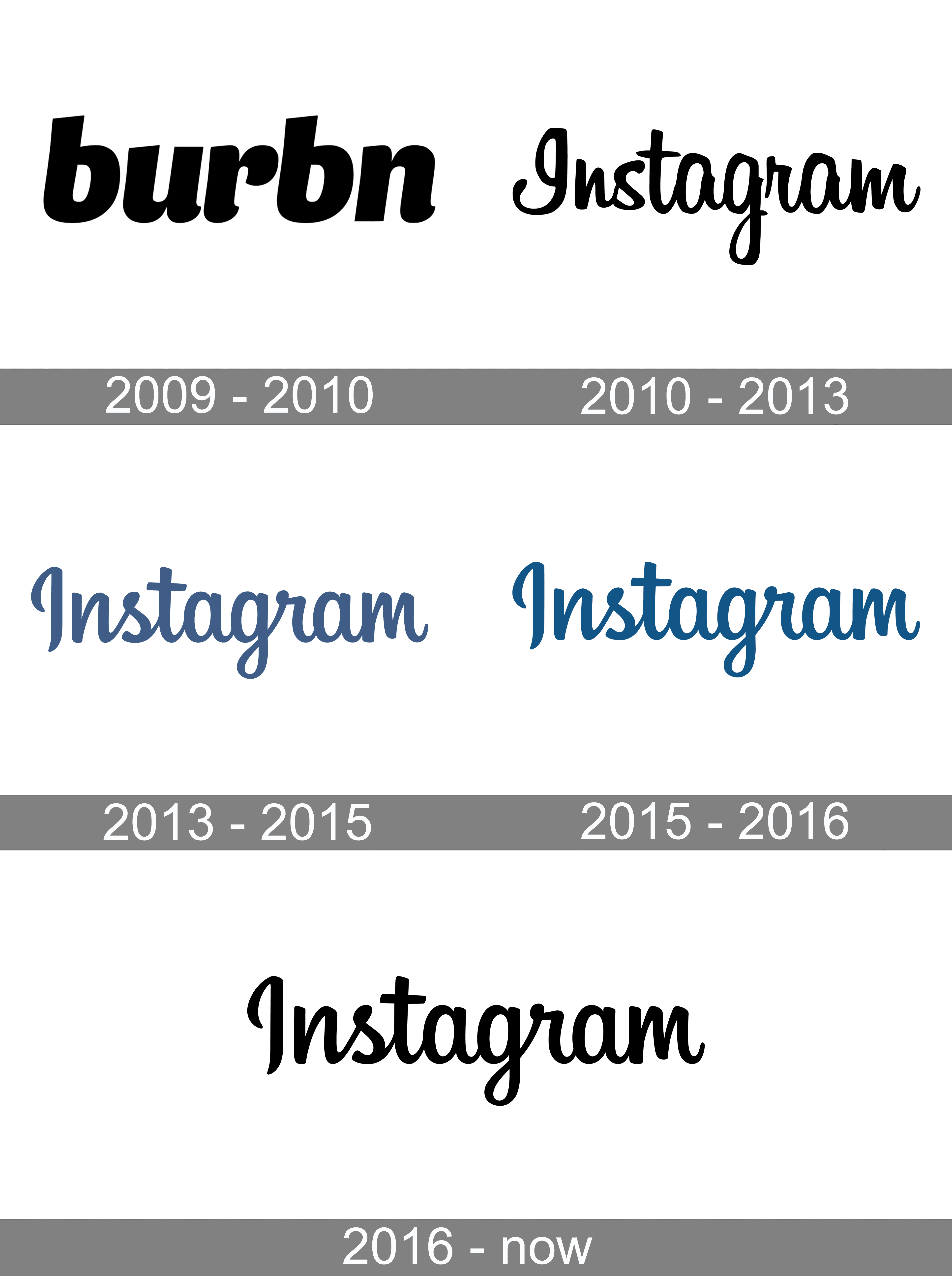For several months in the very beginning of the world’s most popular social media platform’s history, it was called Burbn, and the its stylized name in the lowercase of a custom cursive font with curved and rounded ends of the distinctive and stable lines, — was the only element of the badge. It was set in plain black against a white background, with no additional details.